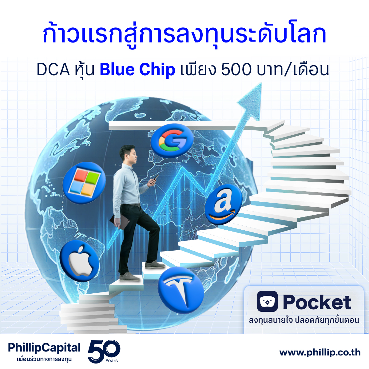 อยากเป็นเจ้าของบริษัทชั้นนำอย่าง Apple, Google, Tesla หรือ Microsoft ไม่ต้องใช้เงินก้อนโตอีกต่อไป! . ที่ Pocket by PhillipCapital เราปลดล็อกโอกาสให้คุณ: ✅ DCA หุ้น Blue Chip อเมริกาได้ ✅ เริ่มต้นเพียงเดือนละ 500 บาท ✅ ลงทุนสบายใจ ปลอดภัย ผ่านโบรกเกอร์ที่เชี่ยวชาญกว่า 50 ปี . 🌟 อย่าปล่อยให้โอกาสเติบโตไปพร้อมกับบริษัทระดับโลกหลุดมือ เริ่มสร้างพอร์ตวันนี้ เพื่ออนาคตที่ดีกว่า! . 📲 โหลดแอป Pocket แล้วเริ่มเลย! [ใส่ลิงก์ดาวน์โหลด] #PocketApp #PhillipCapital #DCA #หุ้นนอก #ลงทุนหุ้นอเมริกา #BlueChip